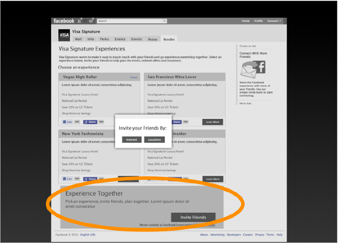 Whatever you choose is mediated through Social. So your Facebook friends can see the fun you’re having as a Visa Signature member.